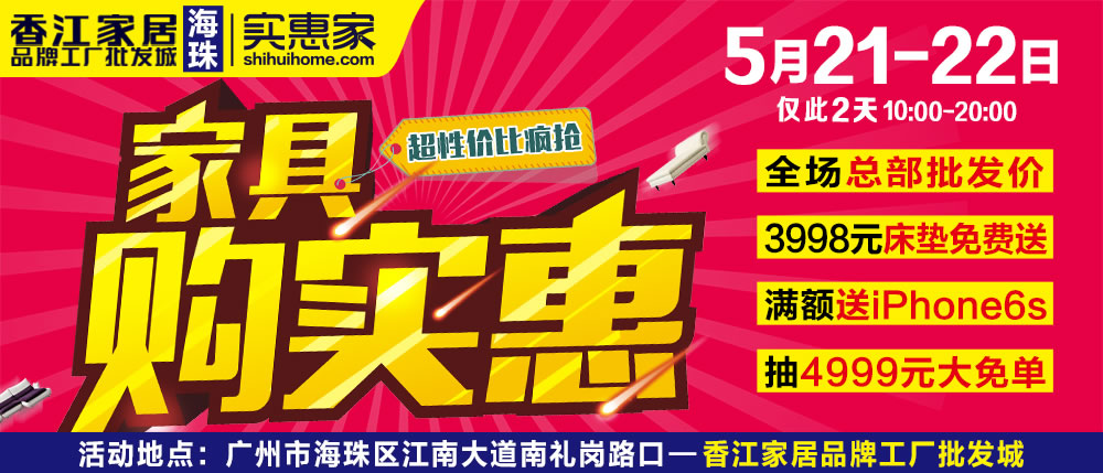 地址:广州市海珠区江南大道南礼岗路口-香江家居工厂批发城(地铁2号江泰路站B1口)