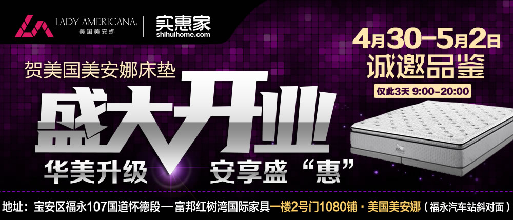 地址:深圳市宝安区福永107国道怀德段--富邦红树湾国际家具一楼2号门1080铺·美国美安娜(福永汽车站斜对面)