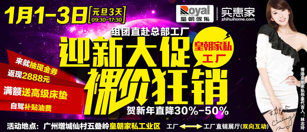 地址:广州市增城区仙村五叠岭皇朝家私工业区工厂←→工厂直销展厅双向互动