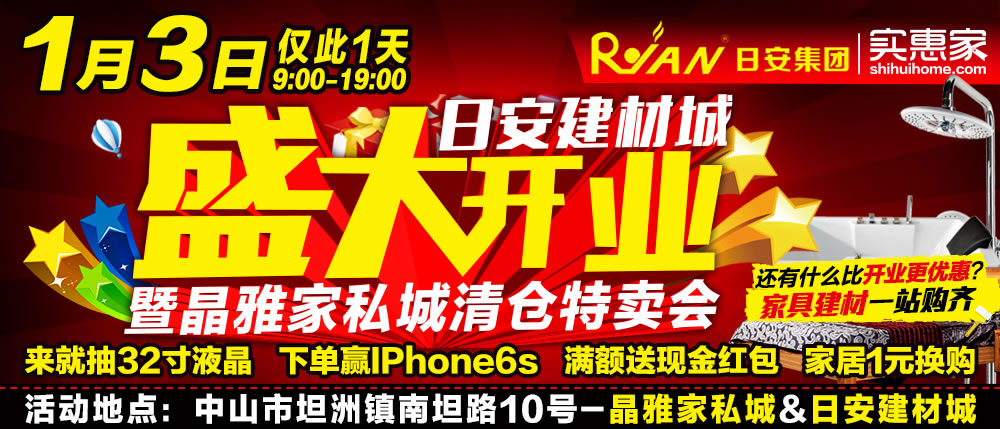 地址:中山市坦洲镇南坦路10号,晶雅家私城&日安建材城