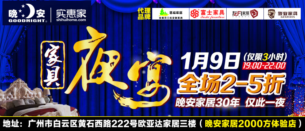 地址:广州市白云区黄石西路222号欧亚达家居三楼(晚安家居2000方体验馆)