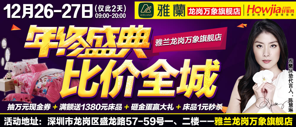 地址:深圳市龙岗区盛龙路57-59号一、二楼——雅兰龙岗万象旗舰店