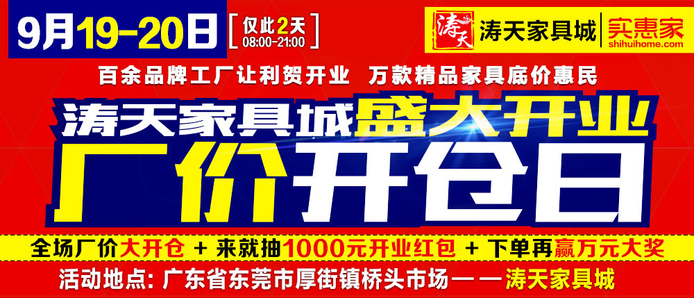 地址:东莞市厚街镇桥头市场--涛天家具城