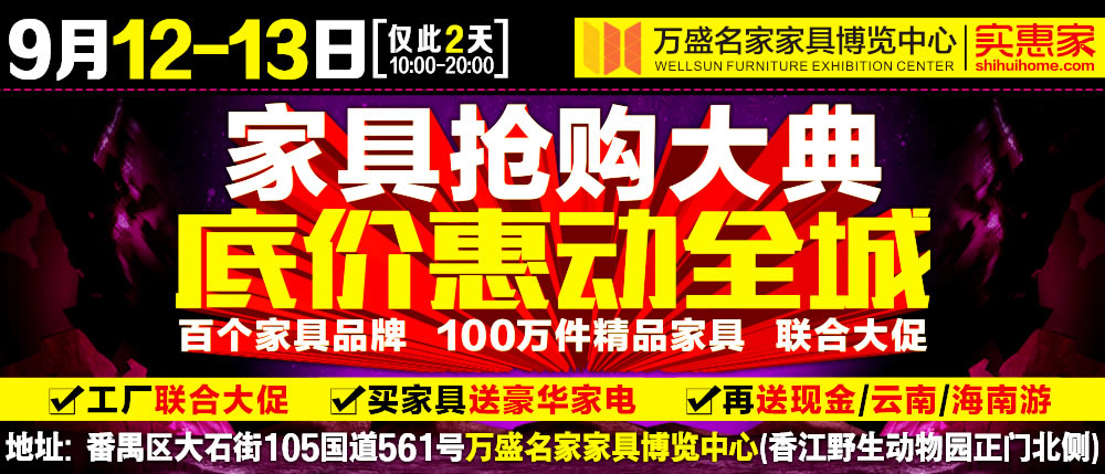 地址:广州市番禺区大石街105国道561号万盛名家家具博览中心