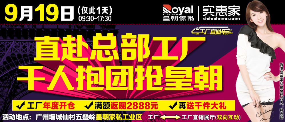 地址:广州市增城区仙村五叠岭皇朝家私工业区工厂←→工厂直销展厅双向互动