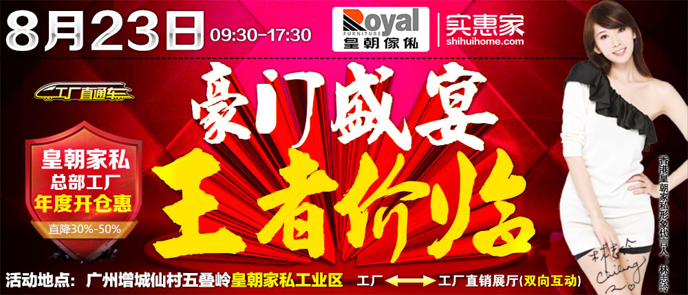 地址:广州市增城区仙村五叠岭皇朝家私工业区 工厂←→工厂直销展厅双向互动