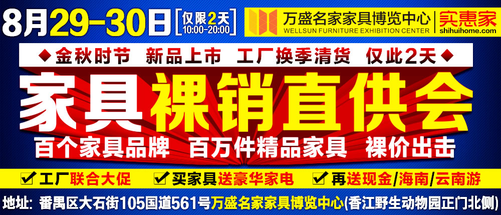 地址:广州市番禺区大石街105国道561号万盛名家家具博览中心