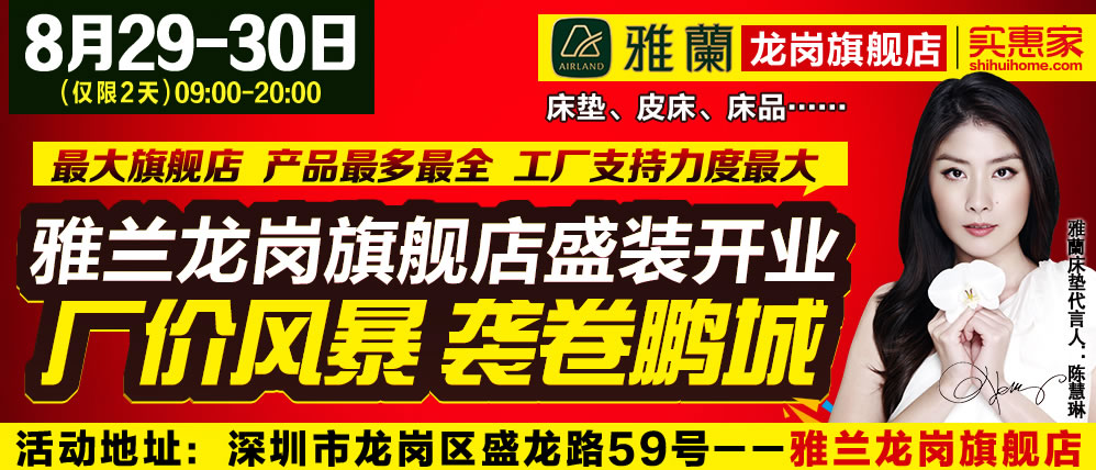 地址:深圳市龙岗区盛龙路59号雅兰龙岗旗舰店