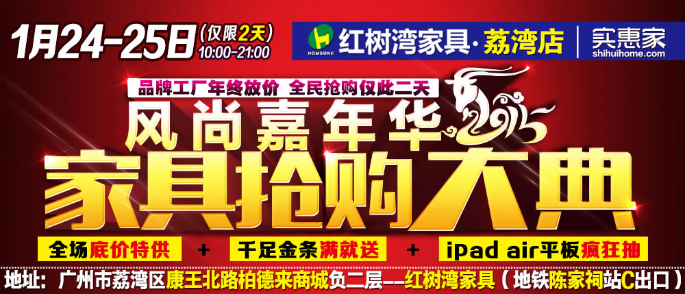 地址:广州市荔湾区康王北路柏德来商城负二层--红树湾家具(地铁陈家祠站C出口)