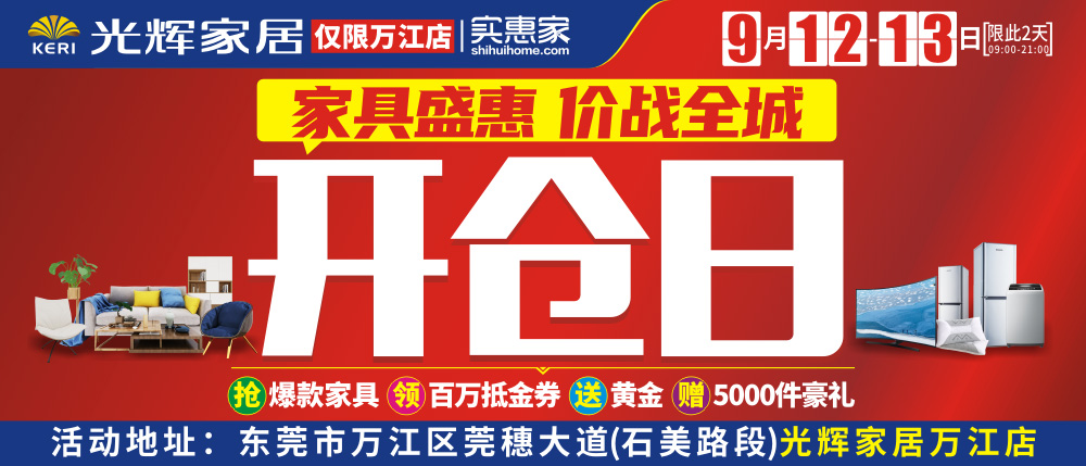 地址:东莞市万江区莞穗大道(石美路段)-光辉家居万江店