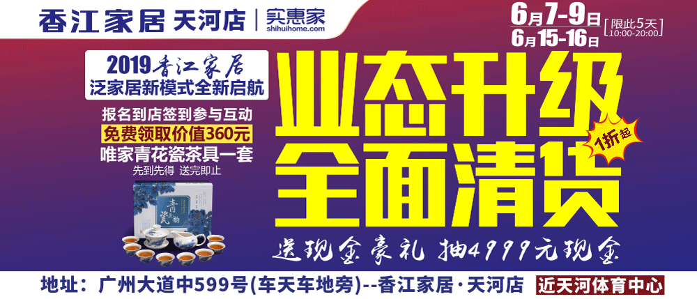 地址:广州市广州大道中599号—香江家居天河店(车天车地旁,广州大道中公交站)