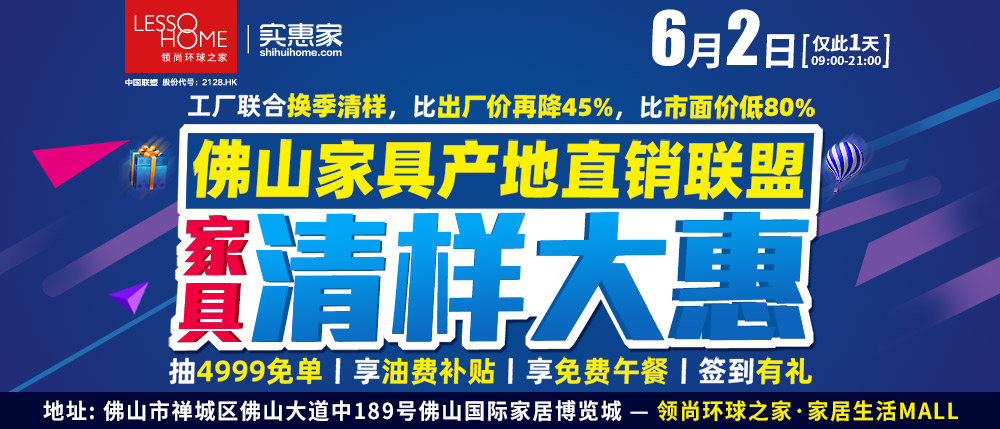 地址:佛山市禅城区佛山大道中189号佛山国际家居博览城-领尚环球之家·家居生活MALL