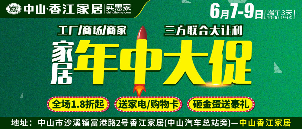 地址:中山市沙溪镇富港路2号香江家居(中山汽车总站旁)
