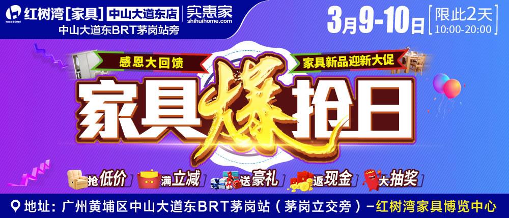 地址:广州市番禺区番禺大道北222号/番禺大道北与南大路交汇处-红树湾家具博览中心(地铁3号线大石站A出口设免费小巴接送)