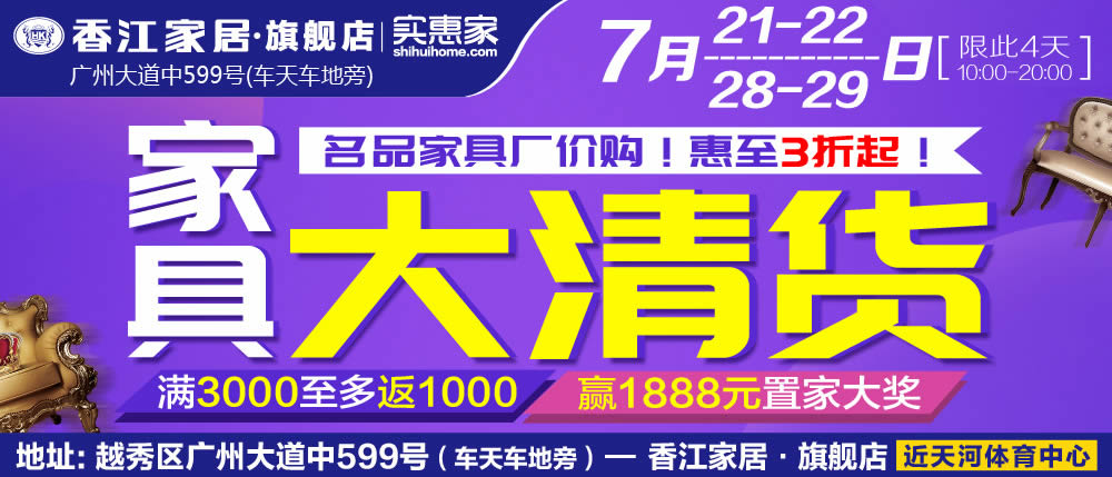 地址:广州市越秀区广州大道中599号-香江家居旗舰店(车天车地旁,广州大道中公交站)