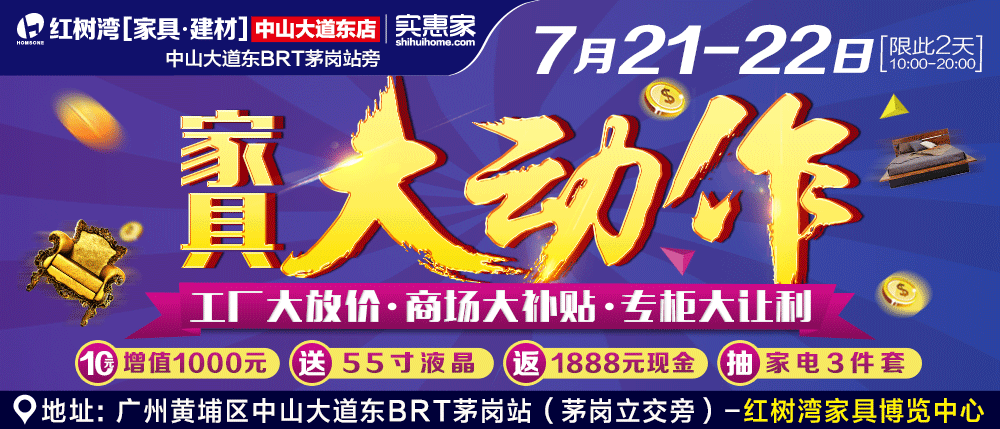 地址:广州市番禺区番禺大道北68号/番禺大道北与南大路交汇处-红树湾家具博览中心(地铁3号线大石站A出口/厦滘站B出口设免费小巴接送)
