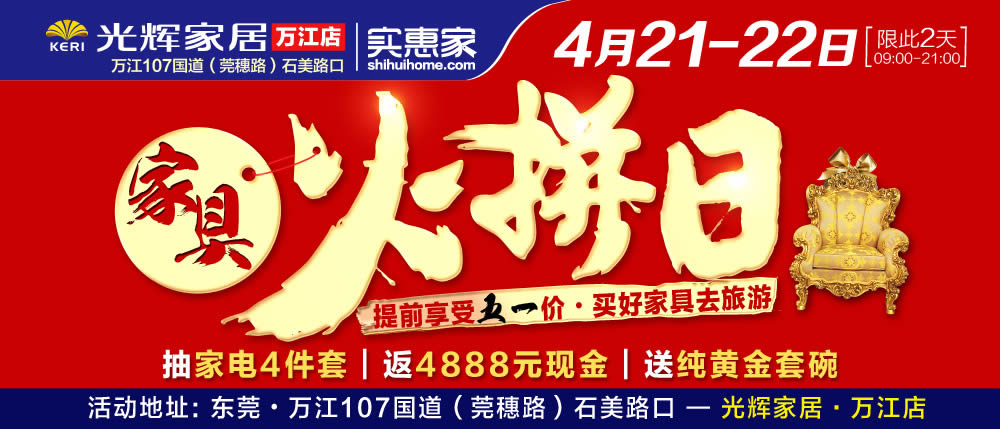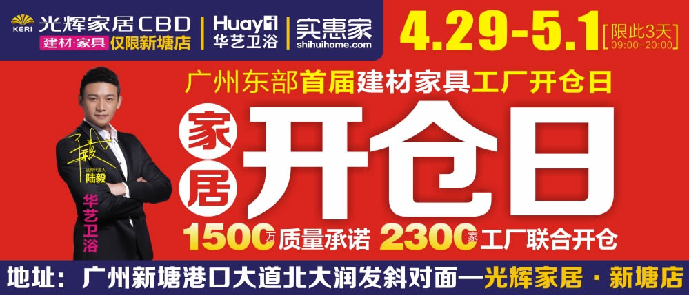 地址:广州新塘港口大道北大润发斜对面—光辉家居•新塘店(免费巴士:地铁13号线新塘站D2出口设免费巴士接送)