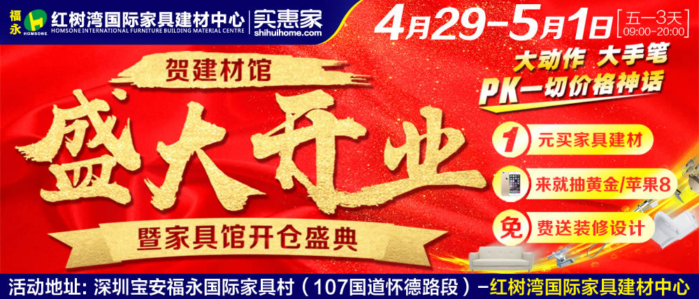 地址:深圳宝安福永国际家具村(107国道怀德路段)-红树湾国际家具建材中心