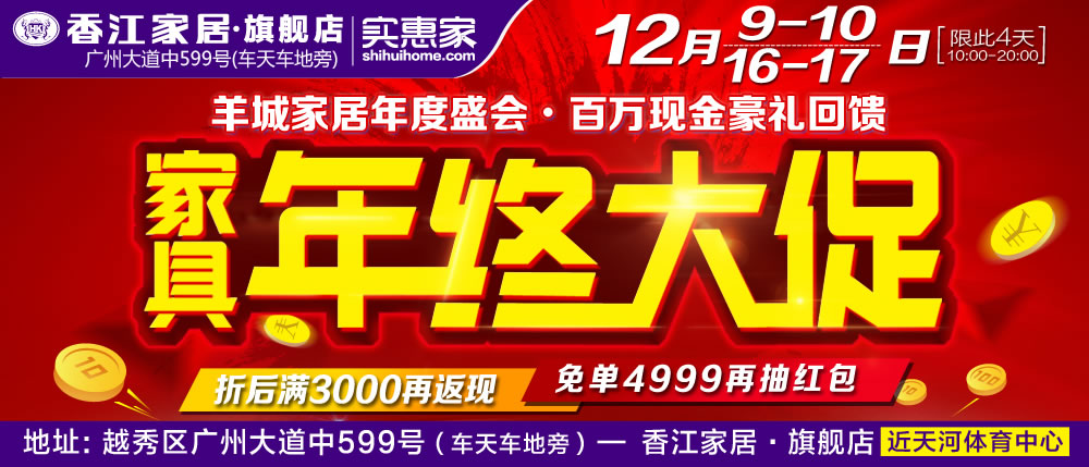地址:广州市越秀区广州大道中599号-香江家居旗舰店(车天车地旁,广州大道中公交站)