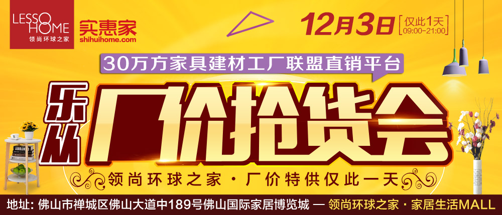 地址:佛山市禅城区佛山大道中189号佛山国际家居博览城-领尚环球之家·家居生活MALL