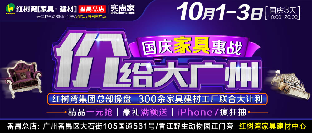 地址:广州市番禺区大石街105国道561号红树湾家具建材中心(香江野生动物园正门旁)