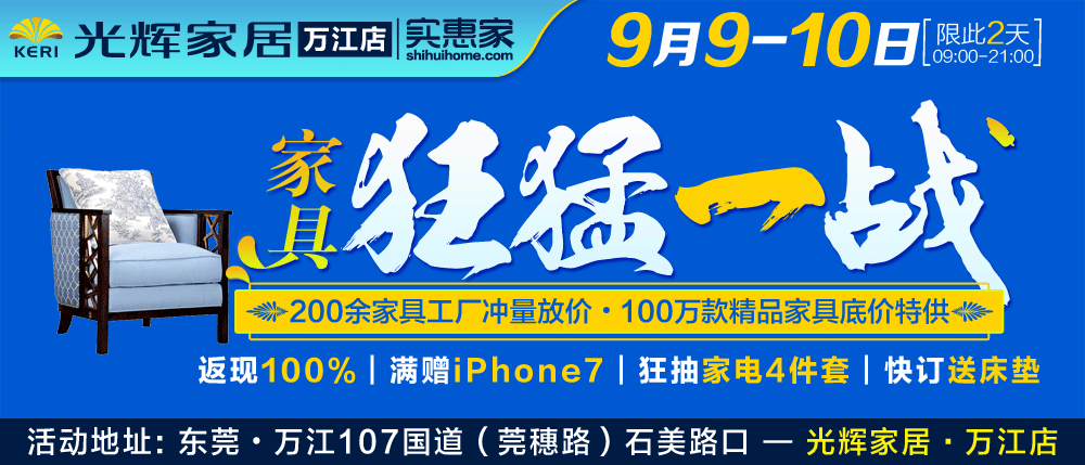 地址:东莞市·万江107国道(莞穗路)石美路口-光辉家居·万江店