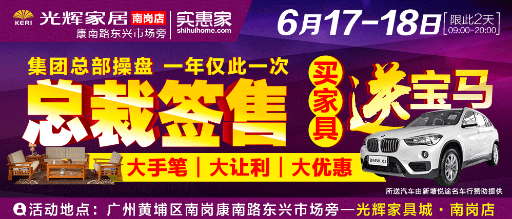 地址:广州黄埔区南岗康南路东兴市场旁—光辉家具城·南岗店