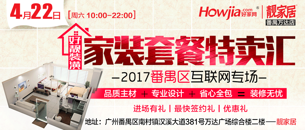 地址:广州市番禺区南村镇汉溪大道381号万达广场4号门进综合楼手扶梯上二楼—靓家居