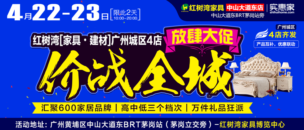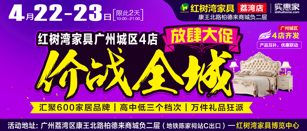 地址:广州市荔湾区康王北路柏德来商城负二层--红树湾家具(地铁陈家祠站C出口)
