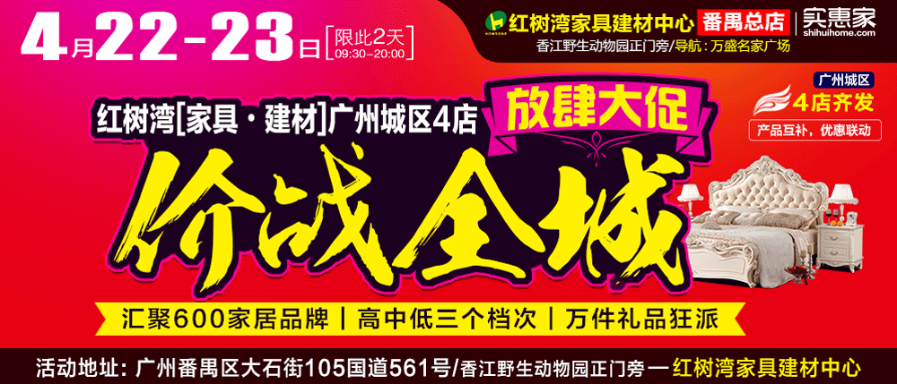地址:番禺区大石街105国道561号-红树湾家具建材中心(香江野生动物园正门旁)