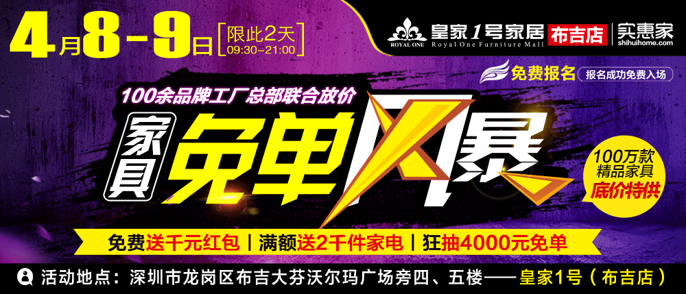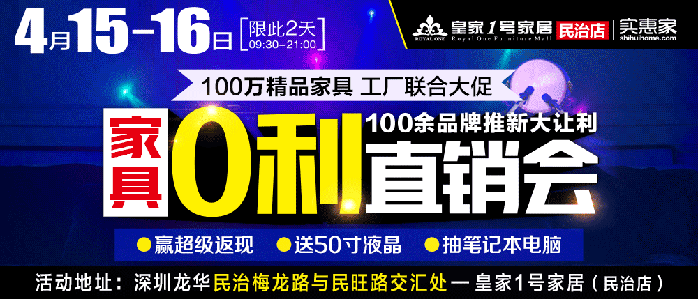 地址:深圳市龙华梅龙路与民旺路交汇处-皇家1号家居(民治店)